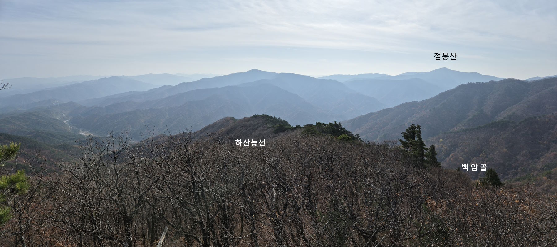 조망구간도 몇군데 있고 특히 거대한 소나무를 볼 수 있는 능선이다.